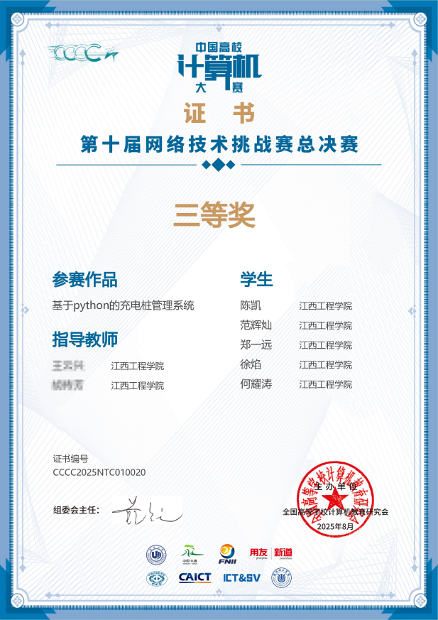 8月29—31日,由全国高等学校计算机教育研究会主办的2025年度“中国高校计算机大赛-网络技术挑战赛”决赛在温州隆重举行。本届赛事汇聚了浙江大学、桂林电子科技大学、南京航空航天大学、武汉大学等国内知名高校,经过层层选拔与激烈角逐,我校人工智能与数据科学学院2支参赛队伍闯入C4-NET挑战赛全国总决赛,荣获全国一等奖和三等奖各1项。其中,该赛项全国总决赛一等奖的获得实现了学校在该领域的历史性突破。