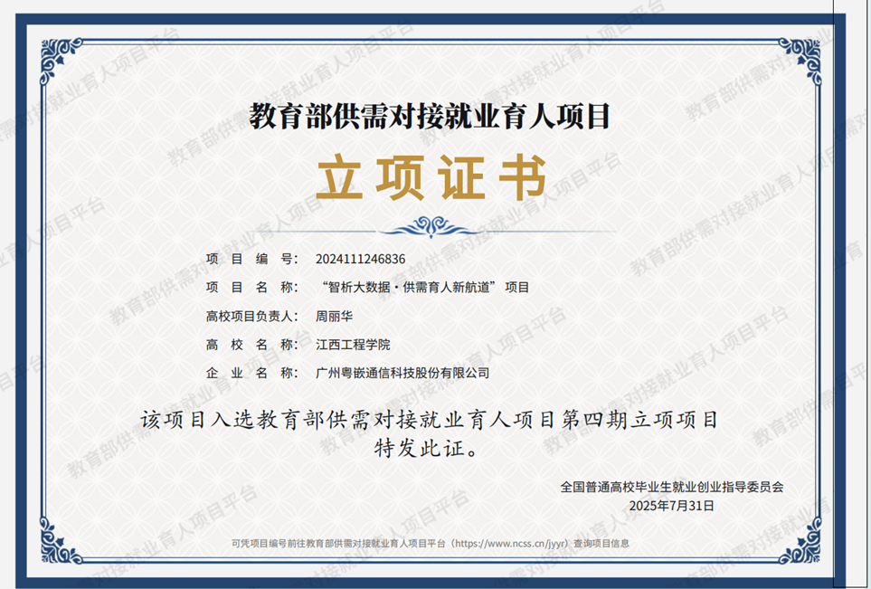 教育部供需对接就业育人项目是深入贯彻党中央、国务院关于“稳就业”“保就业”决策部署的关键举措,旨在搭建校企深度合作的桥梁,推动人才链、教育链与产业链、创新链的有机衔接。项目鼓励高校主动对接企业资源,共同探索人才培养、实习实践、就业指导等育人新路径,切实提升学生的实践能力和就业竞争力,缓解人才供需的结构性矛盾。自启动以来,该项目已成为推动高校人才培养改革、服务经济社会发展的重要平台。