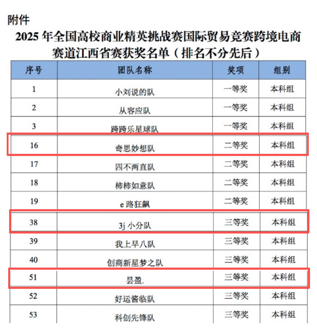竞赛过程中,三支代表队沉着应战、灵活破局,凭借创新性的营销方案与出色的平台赛实操表现,赢得评委一致高度认可。其中,由谭文武老师、刘红亮老师指导的奇思妙想队荣获江西省二等奖;朱伙军老师、李紫霞老师指导的3j小分队和胡丽珍老师、刘红亮老师指导的昙盈两支团队荣获江西省三等奖。